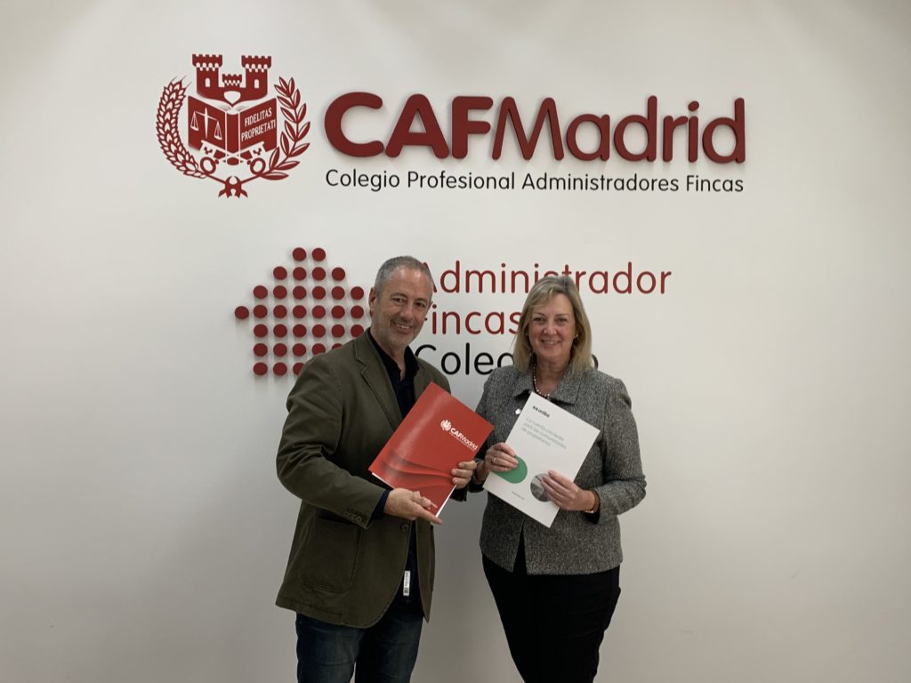 Madrid, 1 de marzo de 2022.- Con el objetivo de sensibilizar y trabajar juntos en el apoyo global de los intereses de los colegiados y asociados, así como de intercambiar servicios que puedan ser beneficiosos para ambas entidades, Isabel Bajo, presidenta del Colegio Profesional de Administradores de Fincas de Madrid (CAFMadrid) y Luis Collado, presidente de la Asociación de Empresas del Metal de Madrid (AECIM), han firmado un Acuerdo Marco de colaboración, enfocado en el desarrollo de actividades de interés general relativas a edificios y vivienda en particular, en el ámbito de la sostenibilidad, movilidad y seguridad de manera prioritaria.