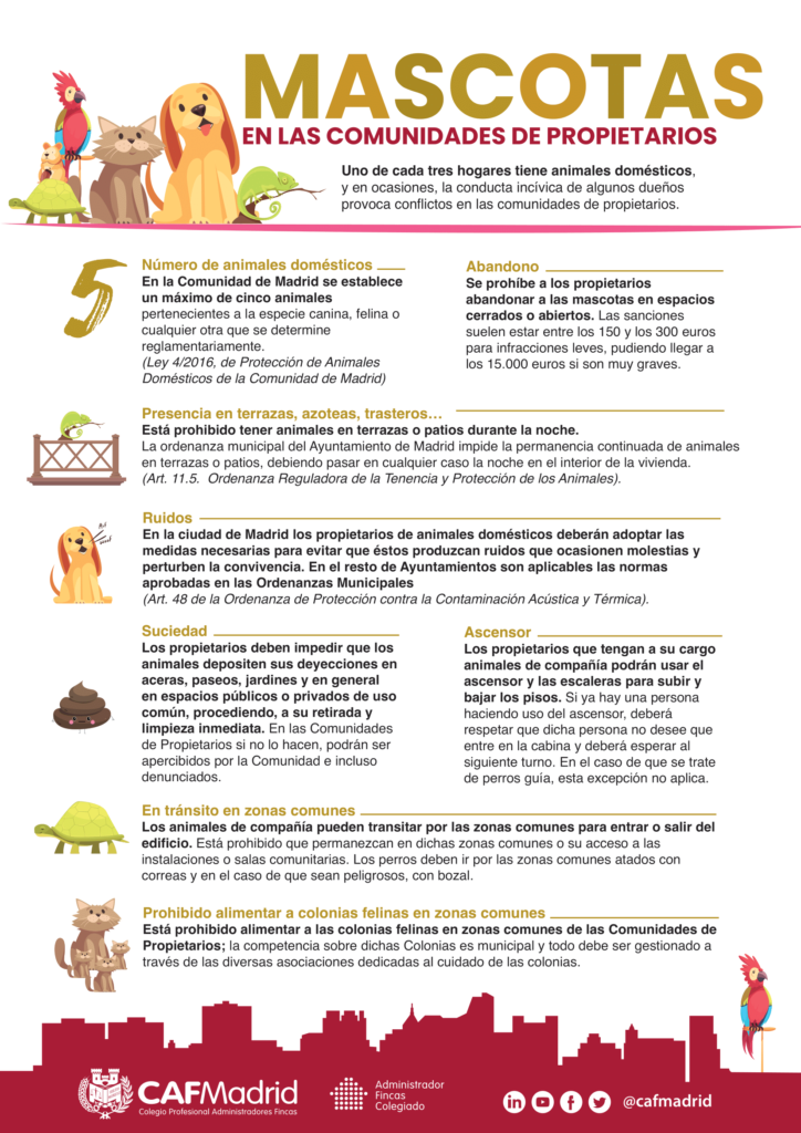 Madrid, 5 de julio de 2022.- Uno de los conflictos más habituales en las comunidades de propietarios se deriva de la presencia de mascotas en las viviendas. Según datos del Colegio de Administaradores de Madrid (CAFMadrid), uno de cada tres hogares tiene animales domésticos que, en algunas ocasiones, producen molestias.