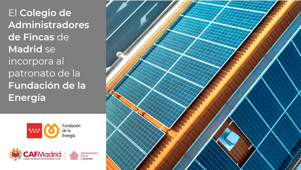 Madrid, 15 de marzo de 2023.- La Fundación de la Energía de la Comunidad de Madrid ha incorporado a su patronato al Colegio de Administradores de Fincas de Madrid (CAFMadrid), institución que representa a un colectivo profesional de interés fundamental para el desarrollo de las actividades de la Fundación, particularmente de todas aquellas actuaciones relacionadas con el sector residencial.